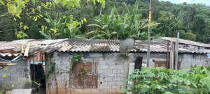 Imóvel com casa de 3 cômodos e banheiro, área livre na frente com algumas bananeiras e nos fundos mandiocas, pé de limão, laranjeira, e outros .