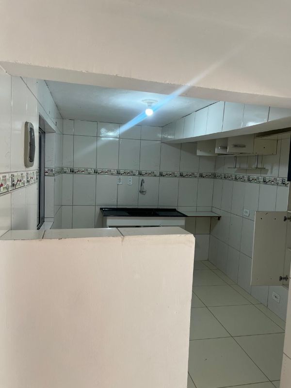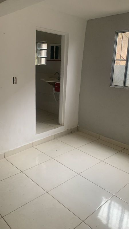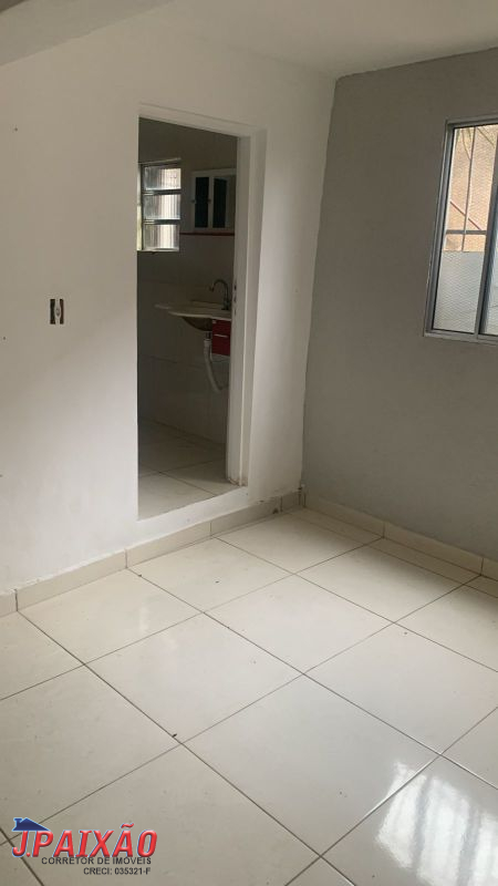 Casa com 01 dormitorio, sala, cozinha e banheiro, acesso pelo corredor lateral, ambiente familiar.