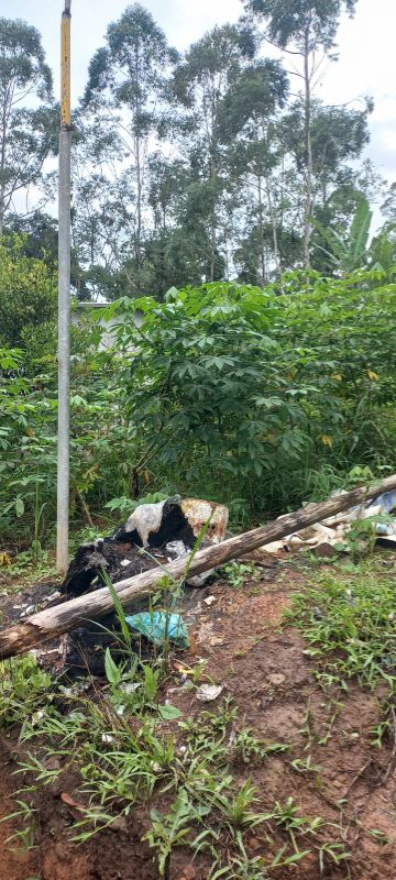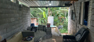 Imóvel com casa de 3 cômodos e banheiro, área livre na frente com algumas bananeiras e nos fundos mandiocas, pé de limão, laranjeira, e outros .